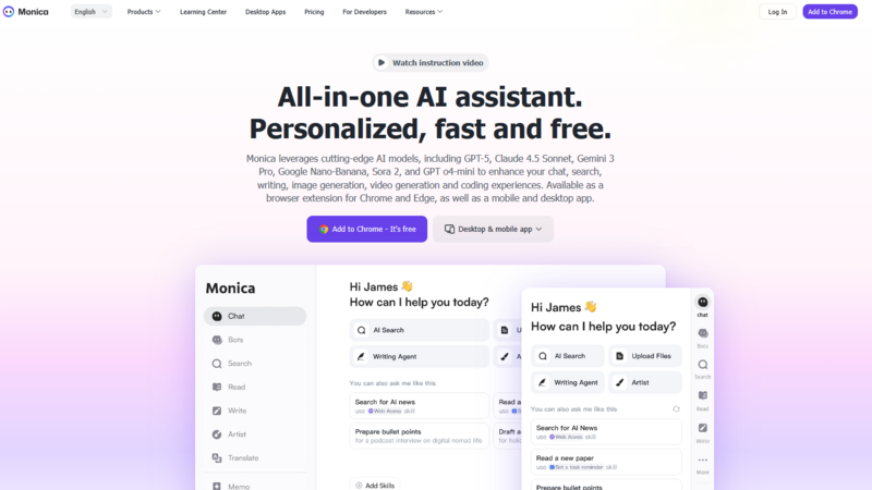 Monica began as a basic browser add-on and has since developed into a complete AI helper. Picture it as a small assistant found in your browser's menu.